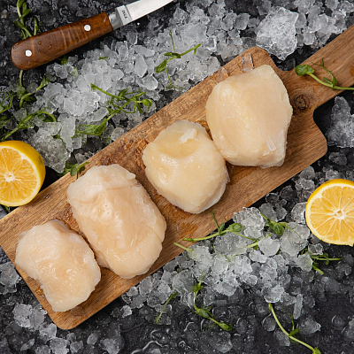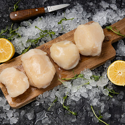 Этот морской гребешок не отбеливается и не подвергается химической обработке, тем самым сохраняет свой полезные качества, а также естественный бежево-кремовый цвет. Данный моллюск обладает очень вкусным, немного сладковатым плотным мясом, отдаленно напоминающим мясо краба.